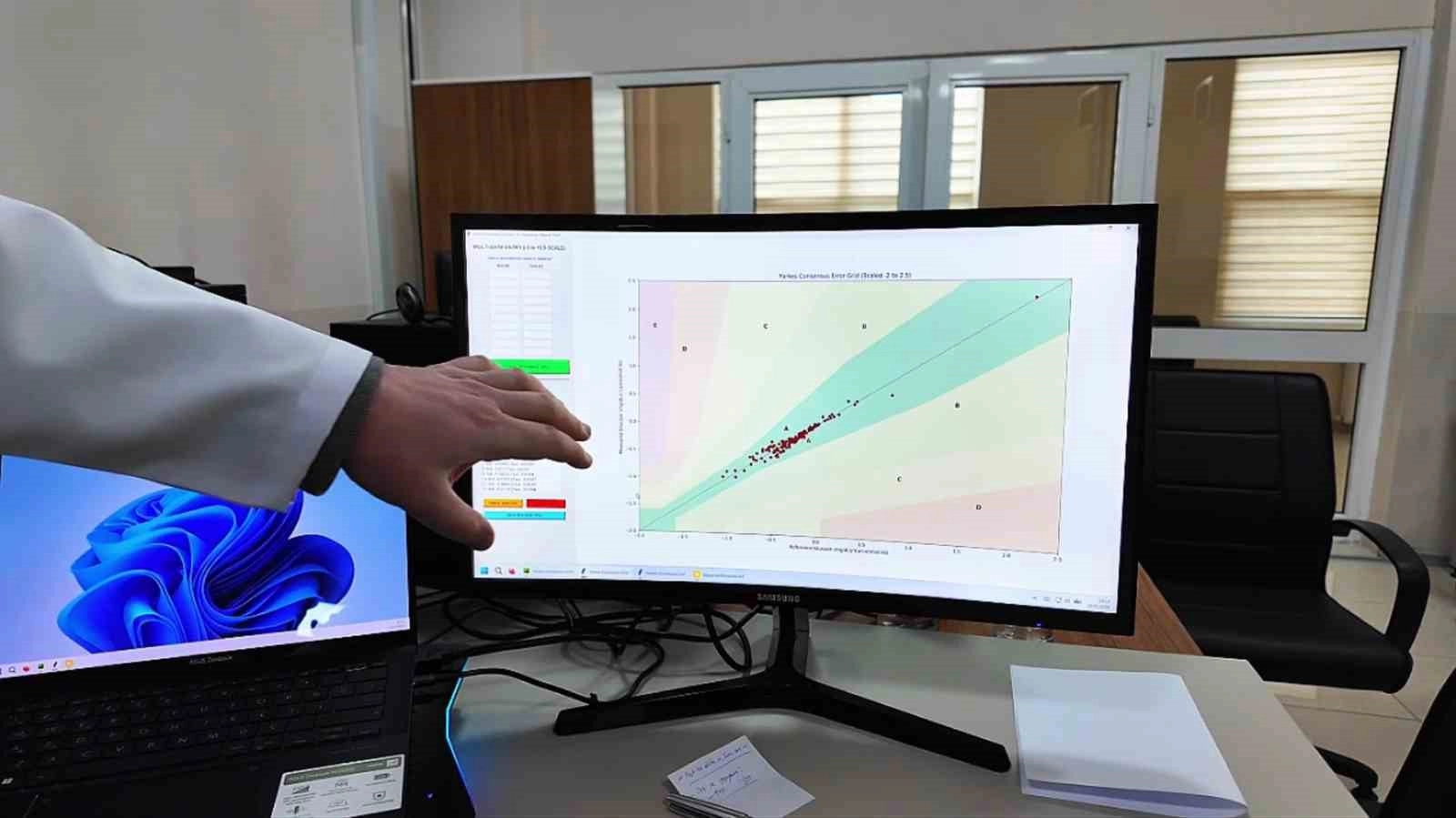 Bu tür kan şekeri izleme sistemleri için uluslararası bir standart bulunduğunu bildiren Bayraklı, "Amerikan Diyabet Derneği toplantısına katılan 100 diyabet uzmanı tarafından oluşturulan bu standartta, ölçümlerin güvenilirliğini gösteren bölgeler yer alıyor. Bizim yaptığımız analizlerde, 150 hastadan elde edilen tüm sonuçlar, en güvenilir aralık olarak kabul edilen bölgede yer aldı. Yani yüzde yüzlük bir doğruluk oranına ulaşmış olduk." ifadelerini kullandı.