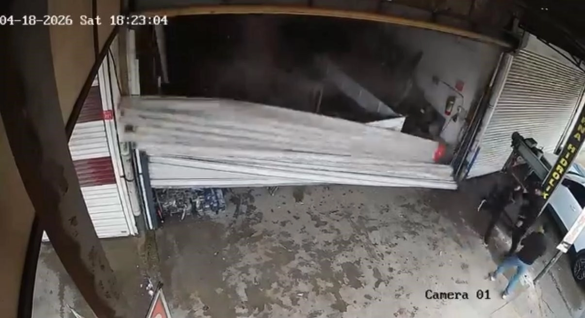 Kentte bulunan sanayi sitesindeki bir oto tamir dükkanında otomatik kepenk kapatılmaya çalışıldı. Kepenk takılarak kapanmayınca bir vatandaşın tekme vurmasıyla düşerek yerle bir oldu. O anlar, iş yerinin güvenlik kamerasına yansıdı.
