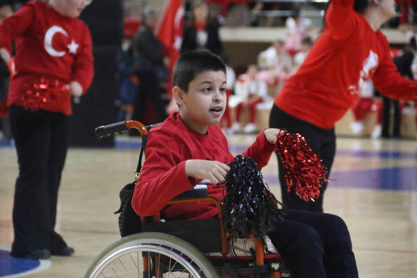 Tüm yurtta olduğu gibi Eskişehir’de 23 Nisan Ulusal Egemenlik ve Çocuk Bayramı Yenikent Şehit Anıl Gül Spor Salonu’nda kutlandı. Özkan Halaç Özel Eğitim Meslek Okulu öğrencileri de Eskişehirspor marşı ile yaptıkları gösteri ile tribünlerden büyük beğeni topladı. 13 yaşındaki, yüzde 60 engelli torununun sürekli okulda yanında olduğunu söyleyen, Yiğit Berat Şen’in anneannesi Ayten Şen’in heyecanı gözlerden kaçmadı. Sahne kenarında torununun figürlerini hatırlatan anneannenin özverisi takdir topladı. Yaşadığı mutluluk hakkında "Ben de çocuklar gibi 23 Nisan yaşadım şu anda, çocuk oldum" diyerek özetledi.
