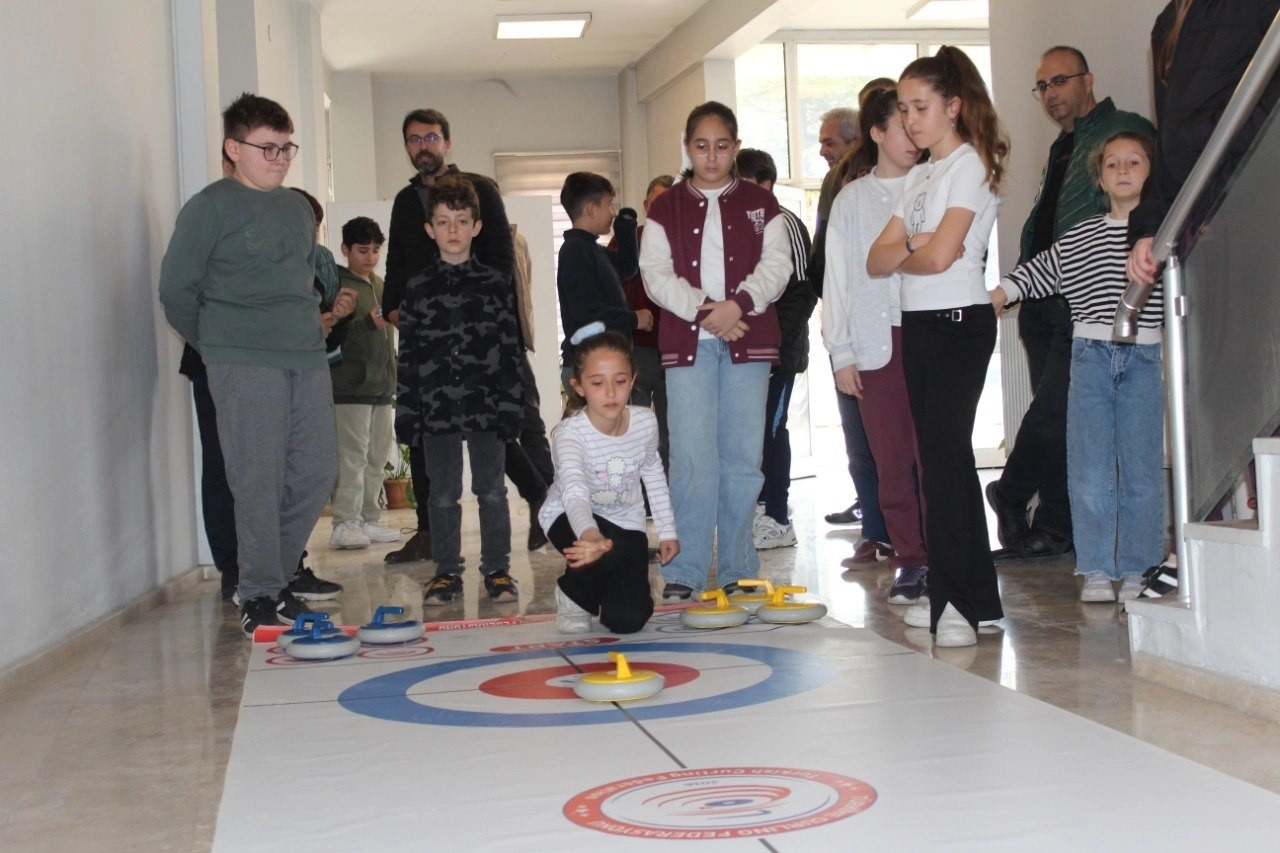 Çorum’un Osmancık ilçesinde Polis Haftası dolayısıyla düzenlenen etkinlikte emniyet personelleri floor curling turnuvasında yarıştı.
