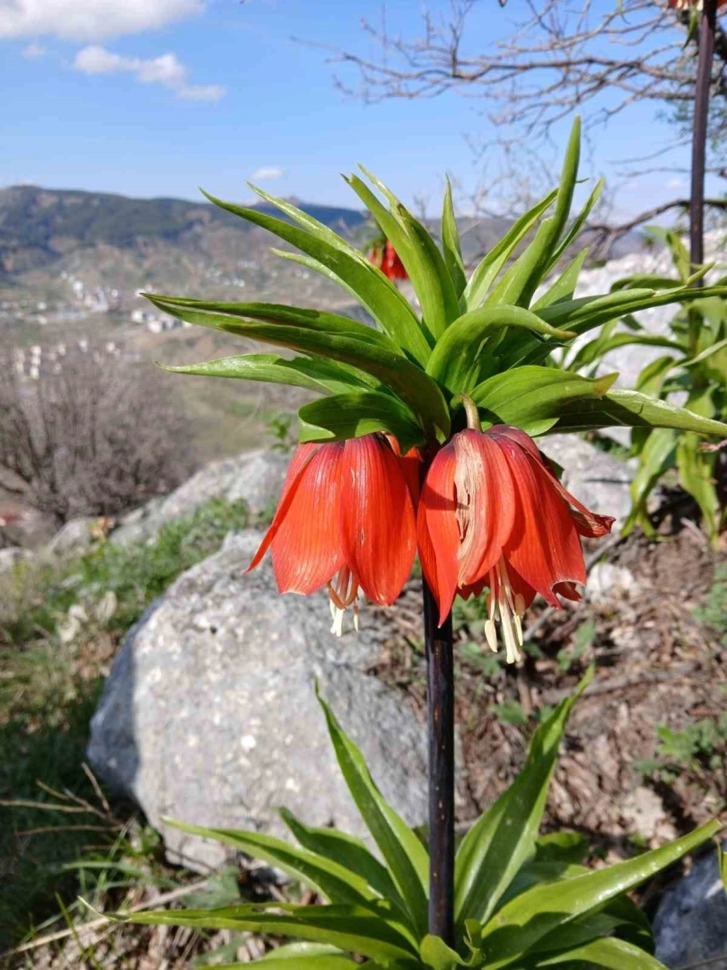 İlçenin güneyinde yer alan sarp ve yüksek rakımlı bölgelerde yetişen ters laleler, nisan ayının ortalarından itibaren çiçek açıyor. Doğu ve Güneydoğu Anadolu’nun belirli kesimlerinde nadir olarak görülen bu endemik bitkiler, bulundukları coğrafyaya görsel bir zenginlik sunuyor.