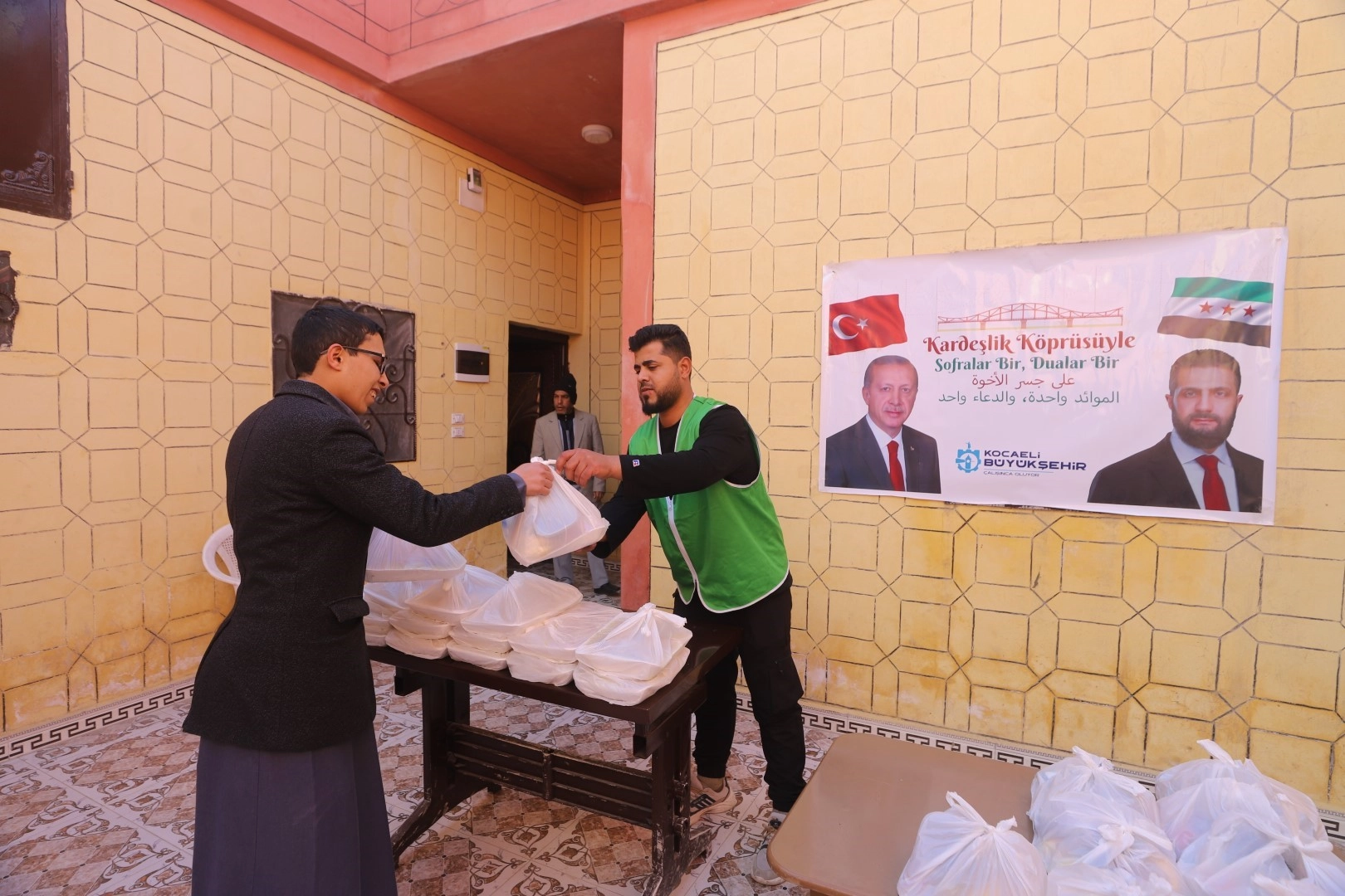 Kocaeli Büyükşehir Belediyesi, 11 Ayın Sultanı Ramazan’ın birlik, beraberlik ve dayanışma ruhunu sınırların ötesine taşıyor. Ramazan ayı boyunca sürecek iftar programlarıyla paylaşmanın bereketini artırıp, gönül coğrafyalarında dayanışma ruhunu güçlendirecek olan büyükşehir belediyesi, Suriye’nin Rakka şehrinde Ramazan ayı boyunca bin kişilik iftar yemeği ikramında bulunuyor. Savaşın gölgesinde birlik mesajları Rakka sokaklarında kurulan iftar sofraları, mazlum ve mağdur vatandaşların yaşadığı zorluklara rağmen dayanışma ruhunu yaşatma çabasını öne çıkardı. Büyükşehir belediyesinin katkılarıyla düzenlenen iftar organizasyonu savaşın gölgesinde tüm dünyaya birlik ve birlik mesajları verdi. Gönül sofraları umut oluyor Paylaşmanın ve kardeşliğin ayı olan Ramazan’da kurulan gönül sofraları ihtiyaç sahiplerine umut olurken, Türkiye ile Suriye halkları arasında güçlü dayanışma köprüsü de kurulmuş oluyor. Rakka şehrinde gerçekleştirilen iftar organizasyonuyla farklı sofralara ulaşan büyükşehir, güçlü manevi atmosfer oluşturuyor. Sınırları aşan ramazan dayanışması Kocaeli Büyükşehir Belediyesi, Ramazan ayının rahmetini ve paylaşma kültürünü yalnızca bir coğrafya ile sınırlı tutmayarak Balkanlar’a da taşıyor. Hızır 41 tırlarıyla 6 ülke ve 8 farklı bölgede Ramazan’ın bereketini gönül coğrafyalarına ulaştıran büyükşehir, birlik ve dayanışma ruhunu sınırların ötesine götürüyor.