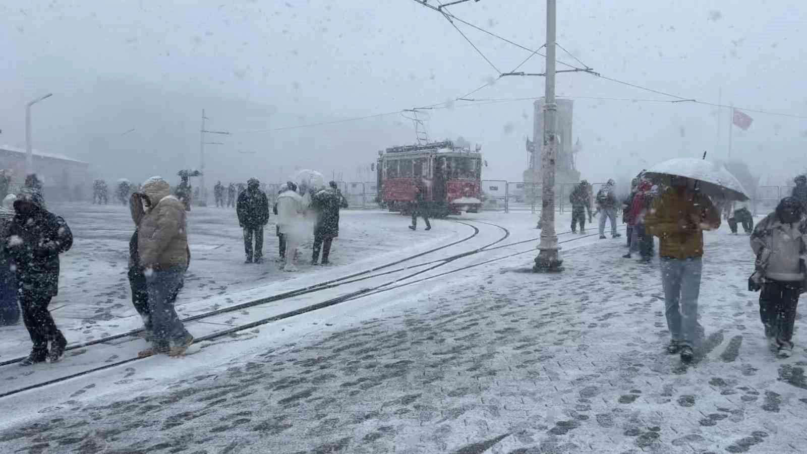 İstanbul yeni yılın ilk gününde karla kaplandı. O noktalardan biri de megakentin turistik bölgesi Taksim oldu. Taksim, kar yağışının etkisini artırmasıyla beyaza büründü. Ortaya çıkan kartpostallık manzara görsel şölen oluştururken, araçların yavaş ilerlediği görüldü.