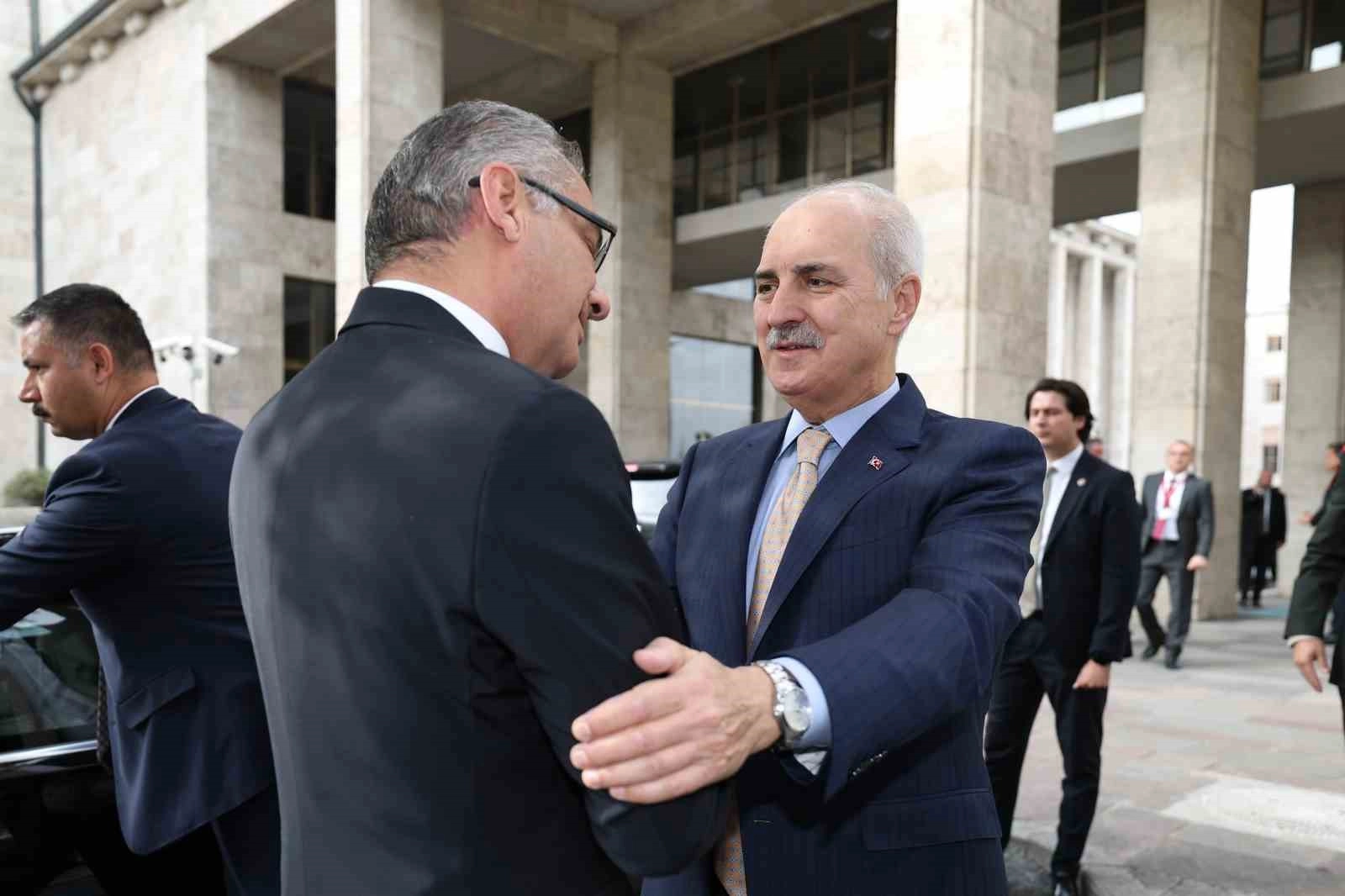 TBMM Başkanı Kurtulmuş, makamında KKTC Cumhurbaşkanı Tufan Erhürman ile bir araya geldi. Kurtulmuş, Meclis’e gelişinde karşıladığı Cumhurbaşkanı Erhürman ile Türkiye ve KKTC bayrakları önünde el sıkıştı. Daha sonra Kurtulmuş ve Erhürman, baş başa görüşme gerçekleştirdi. Numan Kurtulmuş, Azerbaycan-Gürcistan sınırında düşen askeri kargo uçağında kahraman Mehmetçiklerin şehit olmasından dolayı fevkalade büyük bir acı içerisinde olduklarını belirterek, şehitlere Allah’tan rahmet, ailelerine ve Türk milletine sabır diledi. Kurtulmuş, Erhürman’ın ilk resmi ziyaretini Türkiye’ye yapmasının önemli olduğunu belirterek, kendisini TBMM’de ağırlamaktan memnuniyet duyduklarını söyledi. Seçimdeki başarısından dolayı Erhürman’ı tebrik ederek görevinde başarılar dileyen Kurtulmuş, Türkiye ve KKTC’nin ele vererek adadaki Türk halkının haklı davasını bütün uluslararası platformlarda savunmaya devam edeceklerini vurguladı. KKTC ile Türkiye arasındaki ilişkilerin müstesna olduğunu ifade eden Kurtulmuş, bu ilişkilerin şimdiye kadar olgunlaşarak bugünlere kadar geldiğini belirtti. Kurtulmuş, KKTC’nin böylesine önemli bir devlet haline gelene kadar nice badirelerden geçtiğini, nice büyük zulümlerle karşılaştığını, Kıbrıs Türk halkının yok olma tehlikesiyle nasıl karşı karşıya kaldığını bildiklerini ve yakın tarihin Kıbrıs Türkleri bakımından acı sayfalarla dolu olduğunu söyledi. Kurtulmuş, Enosis planları çerçevesinde Kıbrıs’ı tamamıyla Türklerden uzak bir ada haline getirmek istenilen bir yerde yayılmacı ve son derece maksimalist taleplerin artık geçerli olmadığının gün yüzüne çıktığını vurgulayarak, "Bu süreç içerisinde Kıbrıs Barış Harekatımızla birlikte Kıbrıs Türkünün kurtarılması sonrasındaki süreçte hem Kıbrıs Türk halkı hem Türkiye Cumhuriyeti Devleti, son derece yapıcı bir şekilde iki toplumun birlikte var olması için mücadele etmiştir. Hatta ortaya konulan Annan Planı gibi planlar başta olmak üzere birçok plana evet demiş olmasına rağmen maalesef hayır diyen taraf ödüllendirilmiştir. Güney’deki Rum kesimi, Avrupa Birliği’nin tam üyesi olarak kabul edilmiş ve hep şımartılmış, hep öne çıkartılmış ve Kıbrıs Türklerinin üzerinde bir siyasal baskı unsuru haline gelmesine göz yumulmuştur. Ama çok şükür büyük mücadelelerle, büyük fedakarlıklarla 50 yıl artık geride kaldı. Kuzey Kıbrıs Türk Cumhuriyeti de bütün uzuvlarıyla tam manasıyla mükemmel bir devlet haline gelmiştir. Bu devletin varlığının, gücünün uluslararası alanda da tanıtılması en önemli önceliklerimizden birisidir" dedi.