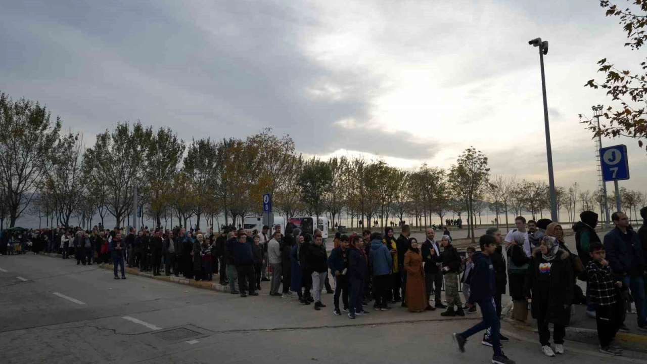 İzmit Körfezi’ne demirleyen Türkiye’nin en büyük savaş gemisi TCG Anadolu’ya ziyaretçi akını yaşandı. Gemiyi görmek isteyen 7’den 70’e vatandaşlar saatlerce kuyrukta bekledi.