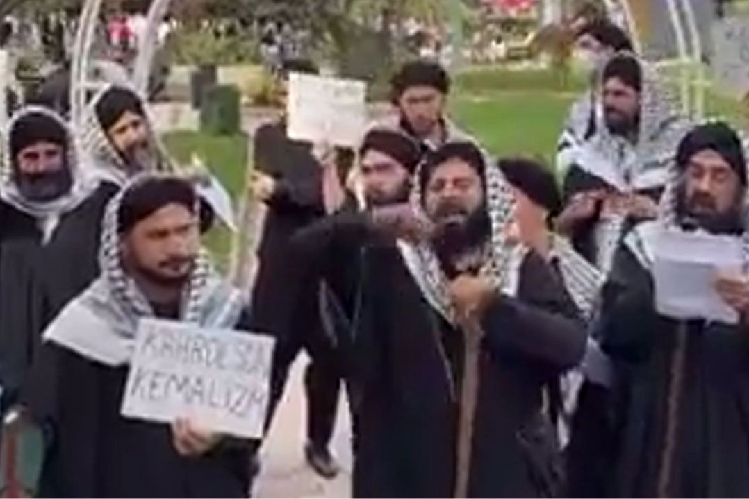 Aynı zamanda basın açıklaması yapan şahıslar Gazi Mustafa Kemal Atatürk'e beddua etti.