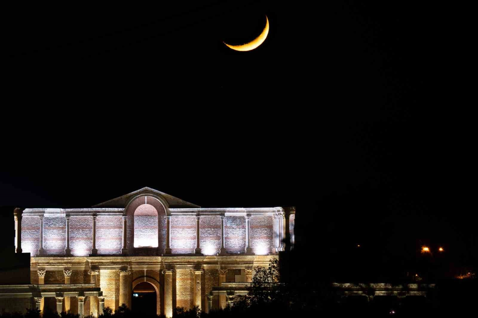 Manisa’nın Salihli ilçesinde bulunan Sardes Antik Kenti’ndeki Gymnasium binası ile ayın hilal hali aynı karede buluştu.