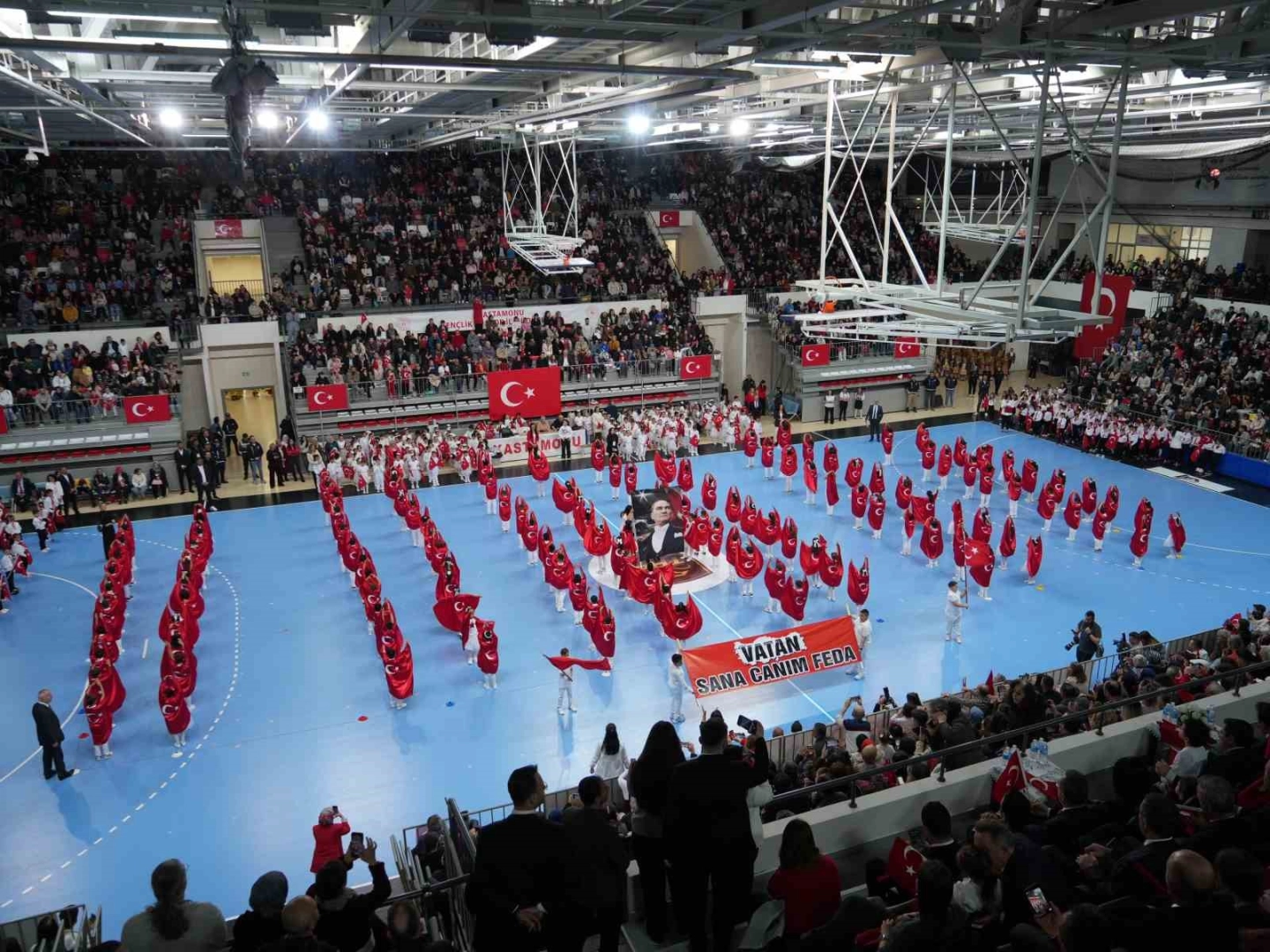 Kastamonu’da 23 Nisan Ulusal Egemenlik ve Çocuk Bayramı çeşitli etkinliklerle kutlandı. Merkez Spor Salonunda gerçekleştirilen törende çocuklar çeşitli gösteriler yaptı. Renkli görüntülere sahne olan törende, çocukların gösterileri vatandaşlar tarafından ayakta alkışlandı. Törende günün anlam ve önemine binaen konuşan Kastamonu İl Milli Eğitim Müdürü Hasan Gümüş, "Sevgili çocuklar; Sizler, milletimizin umut çiçekleri, aydınlık yarınlarımızın güçlü kollarısınız. Bu bakımdan sizlerin sağlıklı, eğitimli ve mutlu bireyler olarak hayata devam etmeniz, geleceğimizi köklü kültürümüzden ilhamla güçlü bir şekilde kurmanız, bilime, teknolojiye, sanata ve spora gelecekte yön vermeniz, al bayrağımızı en yücelerde dalgalandırmanız en büyük arzumuzdur. Türkiye Yüzyılı Maarif Modeliyle sizleri, özgürce düşünen, inisiyatif alabilen, kendi toplumunun ve medeniyetimizin değerlerinden beslenen, hayatın güçlükleri ile baş edebilecek ölçüde donanımlı, akademik başarılarının yanı sıra, sporda, sanatta, bilim ve teknolojide yetenekli ve değerlerine bağlı gençler olarak yetiştirebilmektir. Böylece bugünün çocukları, yarının gençleri olarak sizler ülkemizin sadece zenginliği değil, gücünün ve değişen potansiyelinin kaynağı olacaksınız" ifadelerine yer verdi.