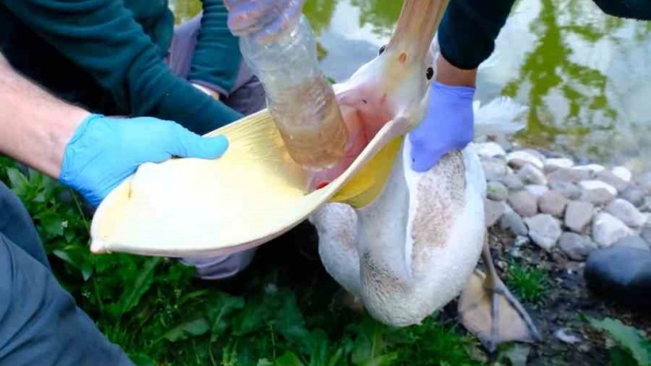 Avrupa’nın en büyük doğal yaşam parkı Ormanya’da pelikan, bir ziyaretçinin atmış olduğu pet şişeyi yuttu. Durumun fark edilmesi üzerine Ormanya’da bulunan uzman ekipler tarafından pelikana müdahalede bulunuldu. Pelikanın midesinden çıkan pet şişe adeta şoke etkisi oluşturdu. Ardından pelikan yeniden gölete bırakılarak balıkla besletildi. Sağlık durumunun iyi olduğu öğrenildi.