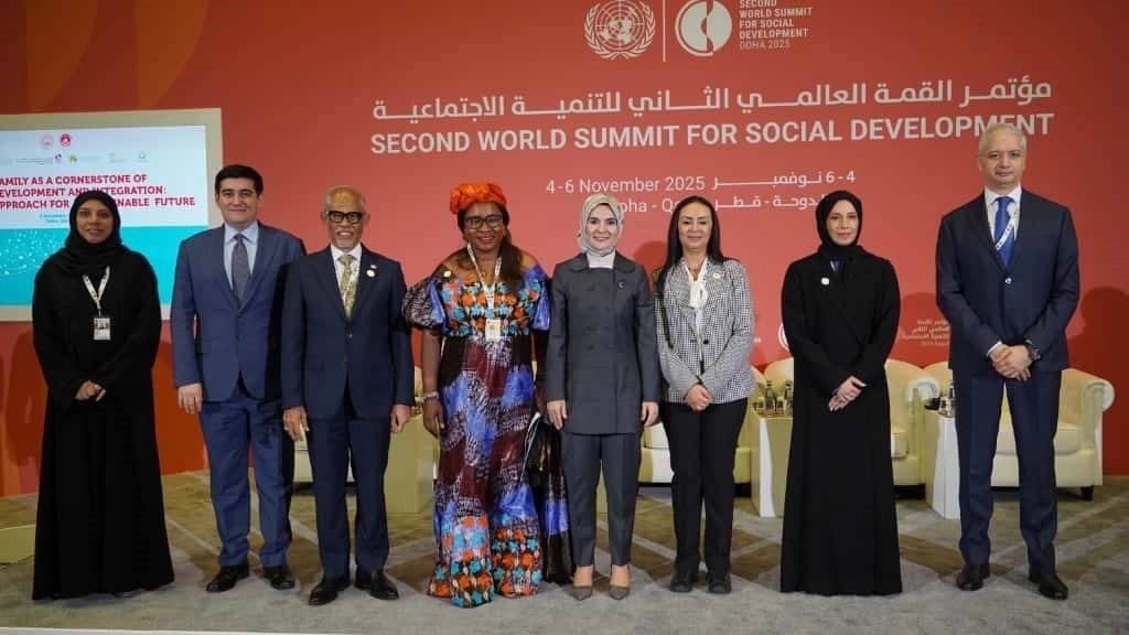 Aile ve Sosyal Hizmetler Bakanı Mahinur Özdemir Göktaş, Katar’ın başkenti Doha’da düzenlenen 2. Dünya Sosyal Kalkınma Zirvesi kapsamında Aile ve Sosyal Hizmetler Bakanlığının ev sahipliğinde Singapur, Özbekistan, Macaristan, Mısır, Katar ve Suudi Arabistan ile ortak gerçekleştirilen "Sosyal Kalkınma ve Entegrasyonun Temel Taşı Olarak Aile: Sürdürülebilir Gelecek İçin Stratejik Bir Yaklaşım" başlıklı yan etkinlikte konuştu. Ailenin sadece toplumsal uyumun temel taşı değil, aynı zamanda sosyal entegrasyonun ve kapsayıcı kalkınmanın merkezi unsuru olduğunu vurgulayan Bakan Göktaş, "Bugün, toplumları ayakta tutan en kadim kurum olan aileyi konuşmak için bir aradayız. Aileyi yeniden merkeze almak insanlığın en acil sorumluluğudur" ifadelerini kullandı. Bakan Göktaş, "Sosyal dengelerin yeniden tanımlandığı bir çağdan geçiyoruz. Toplumsal gelişmeyi yalnızca ekonomik göstergelerle ölçmek mümkün değildir. Gerçek kalkınma insanlara, ailelere ve değerlere dokunarak mümkündür" dedi.