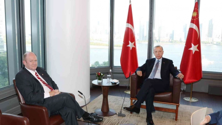 Birleşmiş Milletler (BM) 77. Genel Kurulu nedeniyle Amerika Birleşik Devletleri’nin (ABD) New York şehrinde bulunan Cumhurbaşkanı Recep Tayyip Erdoğan, ABD’li Senatör Chris Coons’u Türkevi’nde kabul etti.