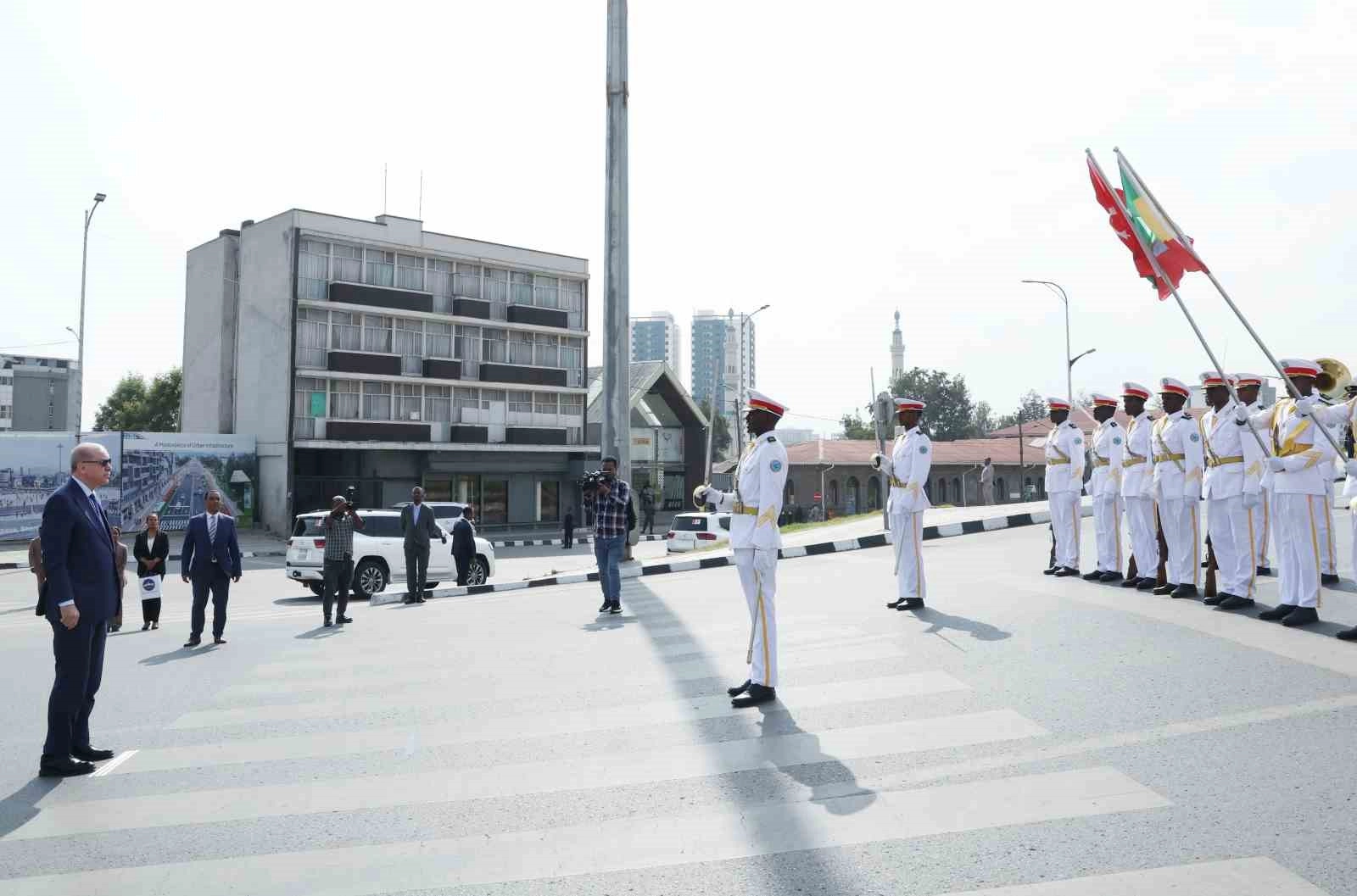 Cumhurbaşkanı Recep Tayyip Erdoğan, resmi ziyarette bulunmak üzere Etiyopya’nın başkenti Addis Ababa’ya geldi. Cumhurbaşkanı Erdoğan ve beraberindeki heyet, Addis Ababa Bole Uluslararası Havalimanı’nda, Etiyopya Başbakanı Abiy Ahmed Ali, Etiyopya Dışişleri Bakanı Gedion Timothewos ve Türkiye’nin Addis Ababa Büyükelçisi Berk Baran tarafından karşılandı. Erdoğan, Etiyopya Addis Ababa’daki temasları kapsamında Adva Zafer Anıtı’na çelenk koyma törenine iştirak etti. Törende, Cumhurbaşkanı Erdoğan’a, Etiyopya Dışişleri Bakanı Gedion Timotheos ve Addis Ababa Belediye Başkanı Adanech Abebe eşlik etti.