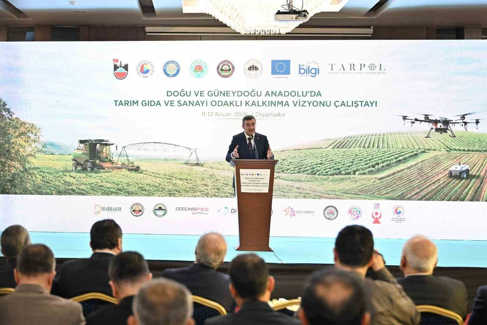 Bir dizi programa katılmak üzere Diyarbakır’a gelen Cumhurbaşkanı Yardımcısı Cevdet Yılmaz, bir otelde düzenlenen ’Doğu ve Güneydoğu Anadolu’da Tarım, Gıda ve Sanayi Odaklı Kalkınma Vizyonu Çalıştayı’na katıldı. Burada konuşan Yılmaz, bölgeler arasındaki gelişmişlik farklarının azaltılmasının bir yönüyle bölgelerin refahını yükseltirken, diğer taraftan genel kalkınma süreci içinde sağlam bir zemin teşkil etmekte olduğunu söyledi. Türkiye yüzyılında kapsayıcı ve topyekun bir kalkınma anlayışıyla hareket etmek zorunda olduklarını belirten Yılmaz, Türkiye yüzyılı hedefleri gerçekleştirecekse bunun sadece birkaç metropol şehrin enerjisiyle başarılamayacağını, tüm illerin, tüm bölgelerin enerjisini harekete geçirerek maksimum düzeyde kullanılması gerektiğini ifade etti. Cumhurbaşkanı Yardımcısı Yılmaz, ‘Terörsüz Türkiye’ hedefi doğrultusunda Doğu ve Güneydoğu Anadolu bölgelerinde güçlenen güven ve istikrar ortamının tarımdan sanayiye, yatırımdan istihdama kadar her alanda çok daha güçlü bir ilerlemenin kapılarını araladığına dikkat çekerek, "Geçtiğimiz 40 yılı aşkın süreçte yaşadığımız ortam, terör ve güvenlik meseleleri maalesef insani kayıplarımızın yanı sıra ekonomik olarak kalkınma bakımından da büyük maliyetler üretmiştir. Doğrudan ve dolaylı ekonomik maliyetlerle ilgili yaptırdığımız bazı hesaplamalarda şunu görüyoruz. Bu da minimum rakam onu söyleyeyim. En az 2 trilyon dolarlık bir kayıptan bahsediyoruz. En az, en hafifinden bu hesaplayabildiğimiz iyi kötü kısmı. Dolayısıyla bu kaynaklar boş yere sarf edilmemiş olsa bu bölgenin ve ülkemizin genelinin kalkınmasına kullanılmış olsa bugün Türkiye Cumhuriyeti çok daha farklı bir noktada olacaktı" dedi.