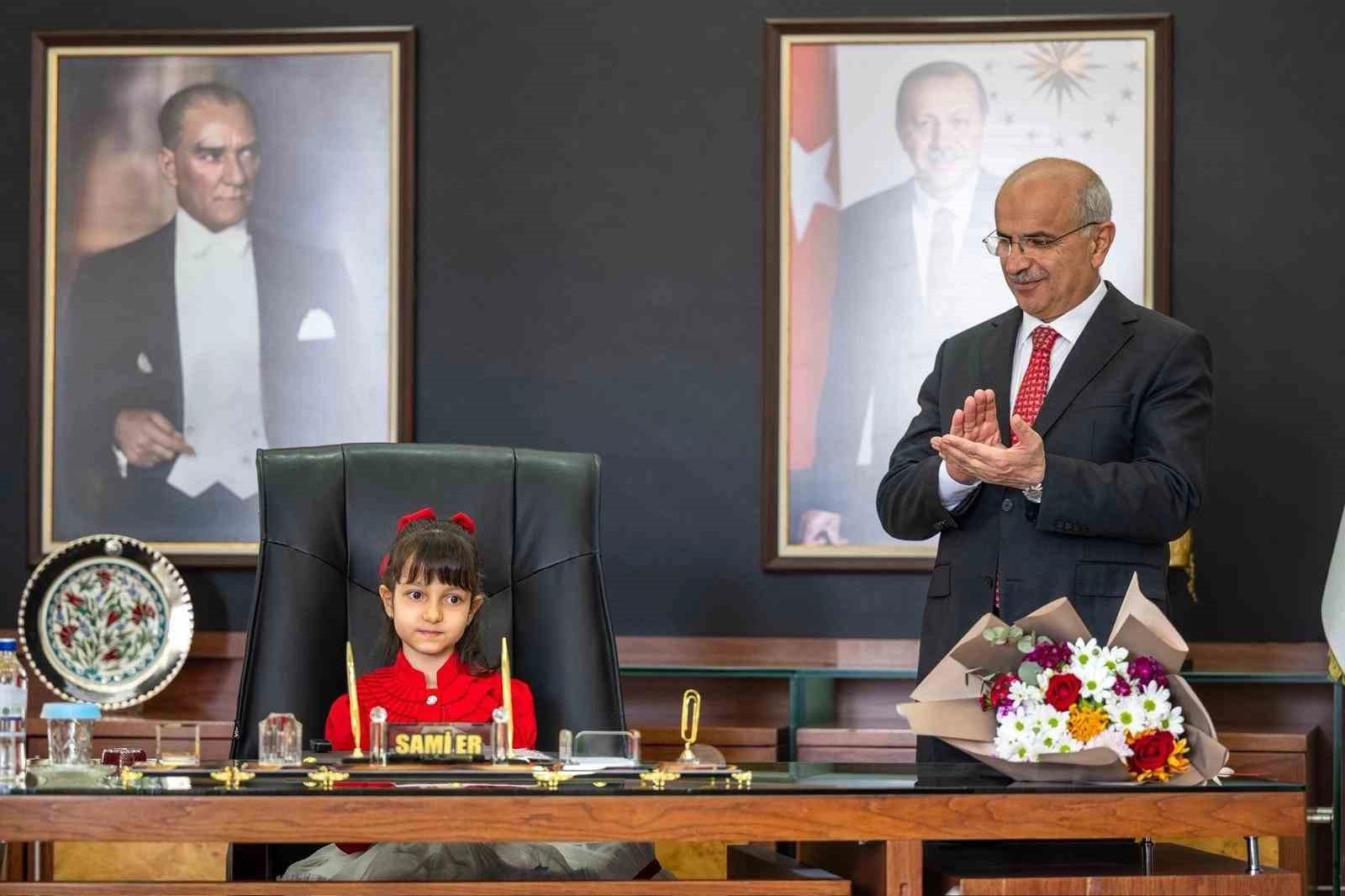 Başkan Sami Er, daha sonra makamını öğrenci Ece Sayar’a bıraktı.