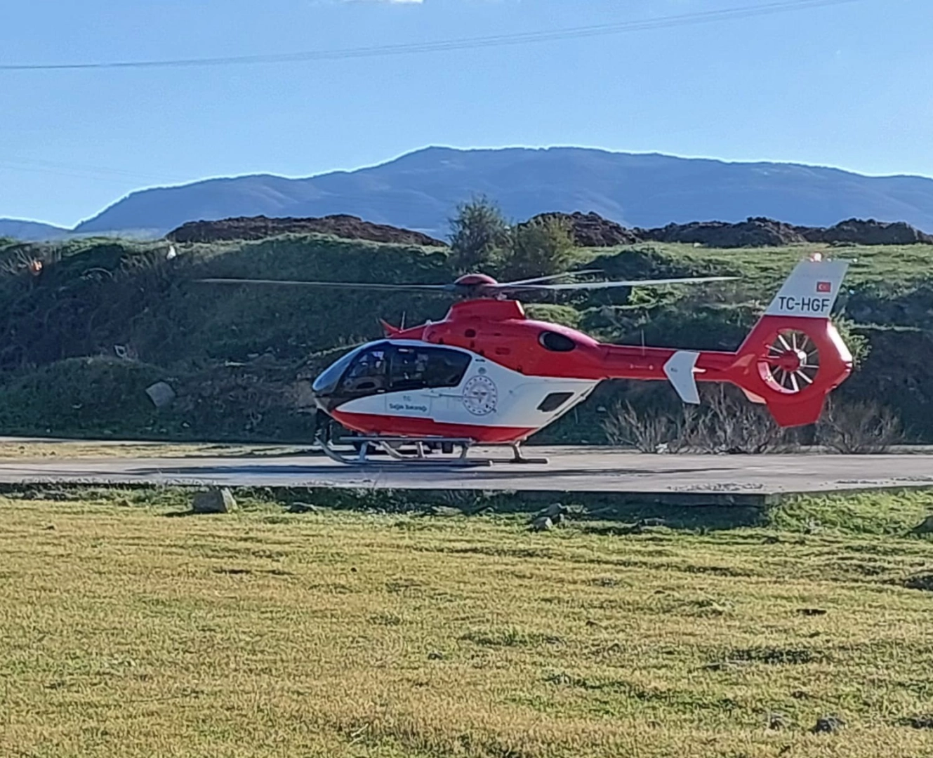 Vezirköprü ilçesine bağlı kırsal bir mahallede yaşayan ve kalp krizi geçirdiği değerlendirilen hasta için Samsun merkezden ambulans helikopter havalandı.
