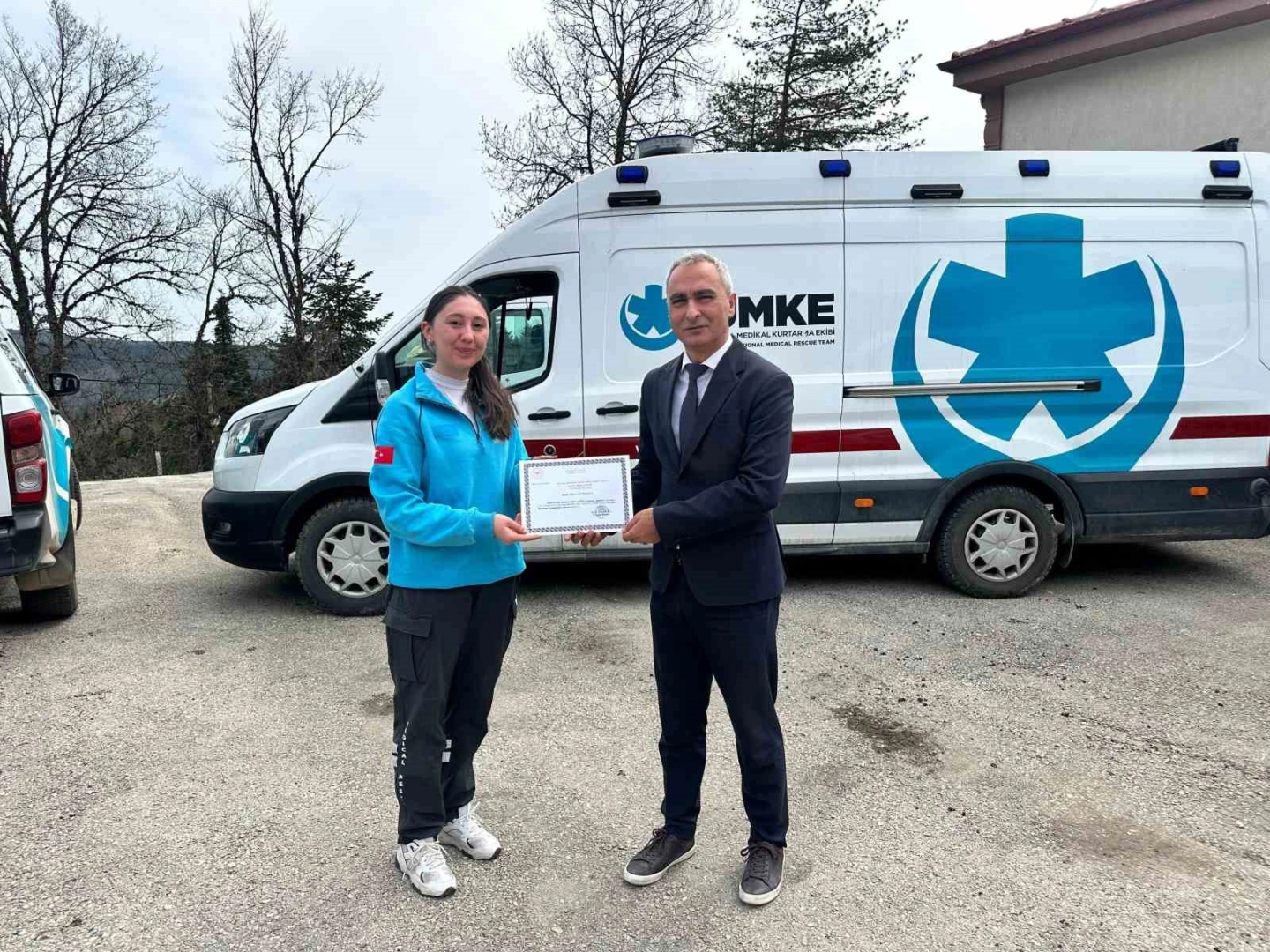 Eğitimleri tamamlayan personele katılım belgeleri; İl Sağlık Müdürü Op. Dr. İsmail Kara, Sağlık Hizmetleri Başkanı Uzm. Dr. Bekir Poçan, Sağlık Hizmetleri Başkan Yardımcısı Dr. Nermin Seçilmiş, Destek Hizmetleri Başkan Yardımcısı Mustafa Mızrak ve Acil Sağlık Hizmetleri Birim Sorumlusu Dr. Züleyha Alaçamlı Arslan tarafından verildi.