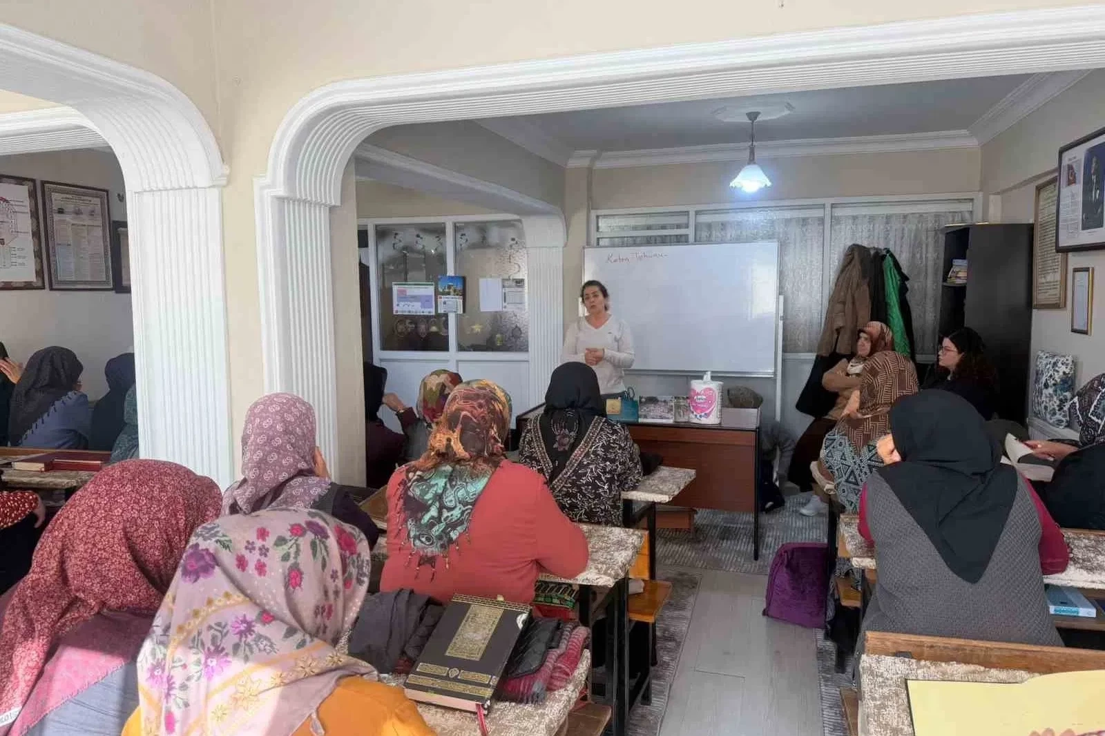 DÜZCE (İHA) – Düzce İl Sağlık Müdürlüğü Halk Sağlığı Hizmetleri Başkanlığı’na bağlı Sağlıklı Hayat Merkezi ekipleri, merkez ilçedeki Kur’an kurslarında eğitim gören kursiyerlere yönelik "Sağlıklı Menopoz Eğitim Okulu" programı düzenledi. Kursiyerlere program kapsamında menopoz süreci, sağlıklı beslenme, düzenli fiziksel aktivite ve yaşam tarzı değişikliklerinin önemi hakkında kapsamlı bilgiler verildi. Eğitimde ayrıca menopoz döneminde sık görülen sağlık sorunları, bunların önlenmesi ve yönetimi ile ilgili öneriler paylaşıldı. Eğitimler interaktif olarak yürütülürken, katılımcıların soruları yanıtlandı ve günlük yaşamda uygulanabilecek pratik bilgiler aktarıldı. Sağlıklı Menopoz Eğitim Okulu’nun, kadınların menopoz döneminde bilinçli ve sağlıklı bir yaşam sürmelerine katkı sağlaması hedeflendi.