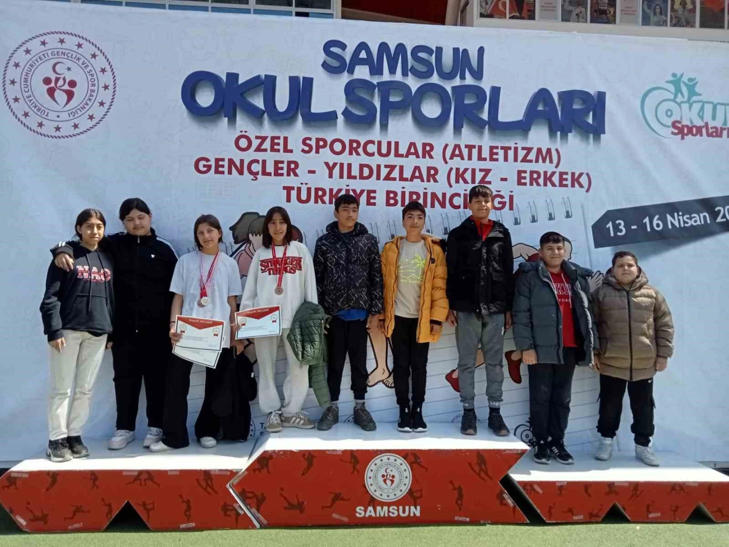 Okul Sporları Özel Sporcular Atletizm Gençler-Yıldız (Kız-Erkek) Türkiye Birinciliği müsabakaları Samsun’un ev sahipliğinde gerçekleştirildi. Şampiyonada mücadele eden Aydınlı özel sporcular da elde ettikleri derecelerle başarıya imza attı. Kıyasıya rekabetin yaşandığı organizasyonda Erkekler kategorisinde Alperen Akcanlı, 200 metre yarışında Türkiye birincisi olarak altın madalyanın sahibi oldu. Ayrıca Akcanlı 100 metre yarışında da Türkiye üçüncülüğü elde ederek önemli bir başarı daha kazandı. Yıldız Kızlar kategorisinde gülle atma branşında mücadele eden Hatice Özbilen, Türkiye 4.’sü oldu. Aynı kategoride Yağmur Ada Taşan, 200 metre yarışında Türkiye 3.’sü olurken, uzun atlama branşında ise Türkiye 2.’si olarak çifte başarıya ulaştı. Yıldızlar 800 metre yarışında Sevgi Kara da Türkiye 4.’lüğü elde ederek kürsü mücadelesinde yer aldı.