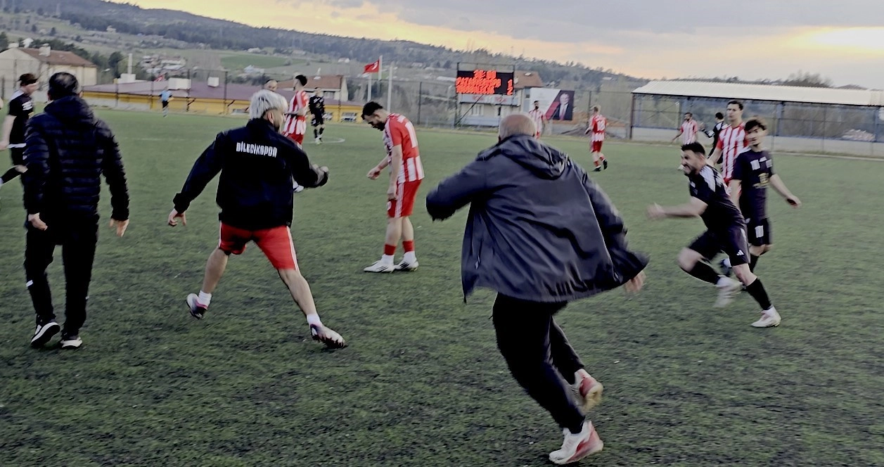 Amatör Lig play-off müsabakası sonrası saha içi adeta ringe dönerken, uçan tekmeler ve yumruklar havada uçuştu.